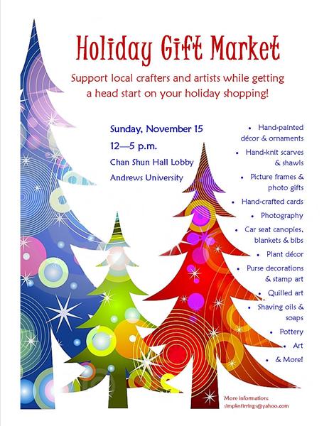 Come out and support local artists and crafters while getting a head start on holiday shopping! Sunday, November 15, 12-5pm in the Chan Shun Hall lobby. Items for sale include hand-painted decor and ornaments, scarves and shawls, picture frames and photo gifts, pottery, quilled art, plant decor, hand-crafted wooden toys, baby items, and more! For further information, contact Diane Helbley at simplestirrings@yahoo.com.
