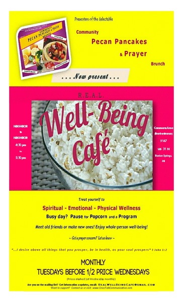 R.E.A.L. Well-Being Café is presented by the organizers of the Community Pecan Pancakes & Prayer Brunch and in many ways is a follow-up to the in-roads that the brunch had made.