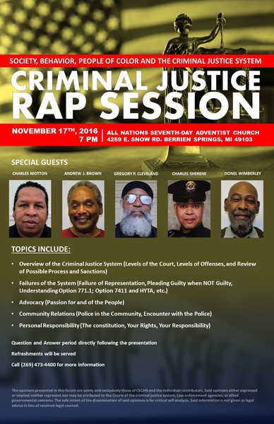 Criminal Justice Rap Session, November 17 @ 7 PM