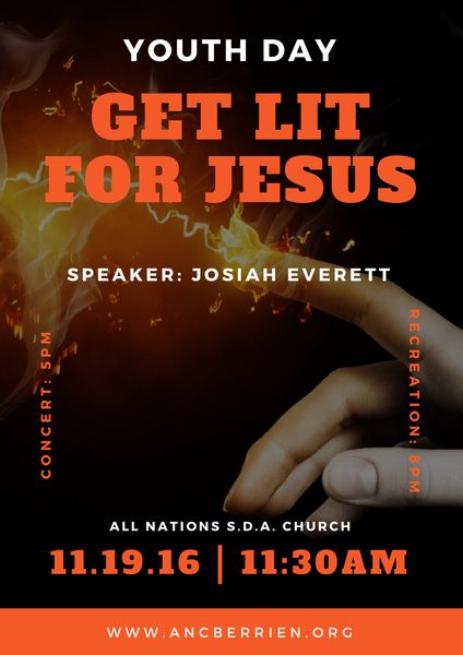 All Nations SDA Church invites you to join its 11:30 a.m. service. Josiah Everett will present the sermon. Our Bible study starts at 10:00am.