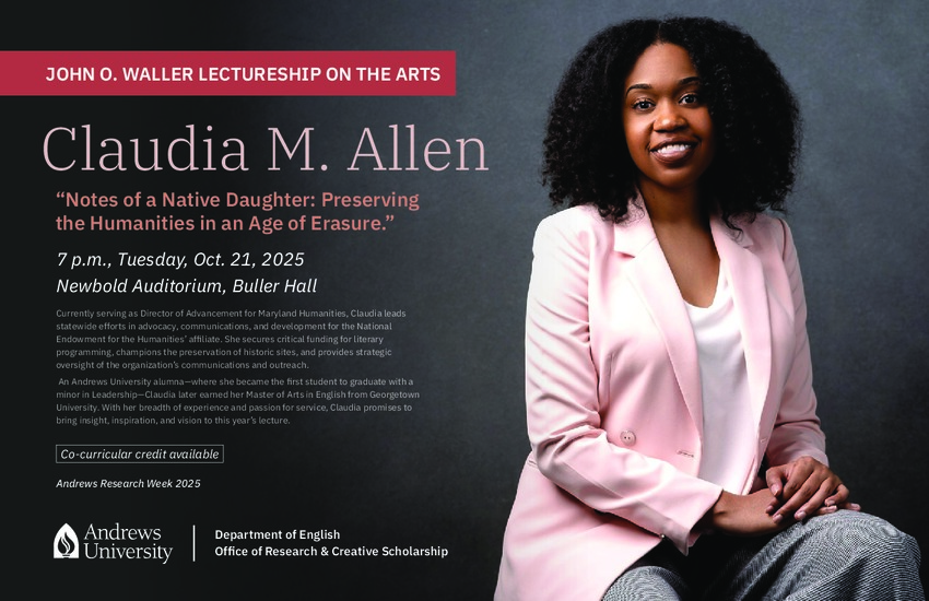 Join us for the John O. Waller Lectureship at 7 p.m. on Tuesday, Oct. 21, 2025, in Newbold Auditorium, Buller Hall.