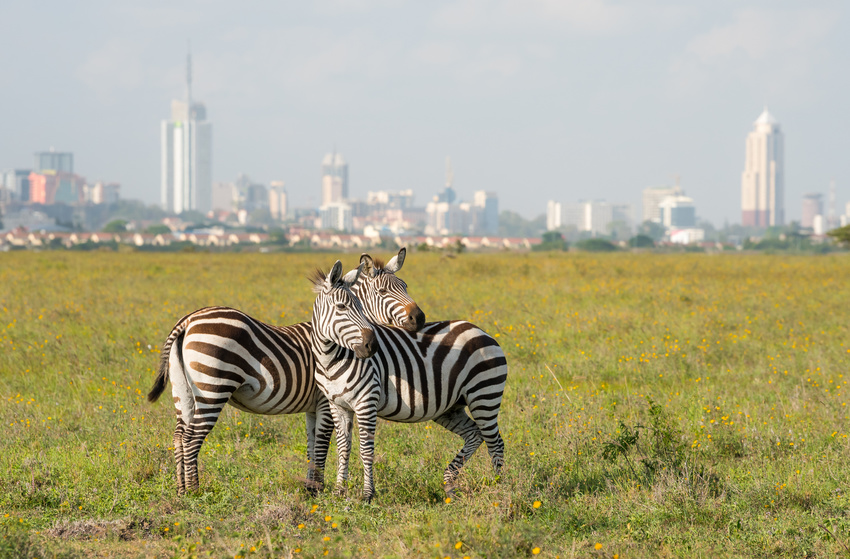Zebras with Nairobi in the background