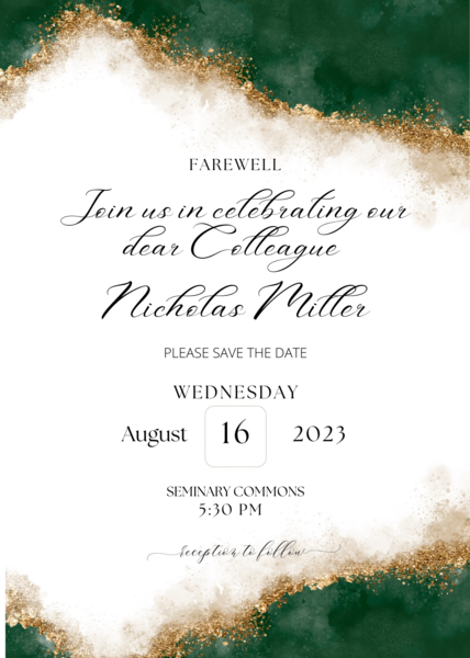 You are invited to a farewell in honor of Nicholas Miller, professor of church history and director of the International Religious Liberty Institute at the Seventh-day Adventist Theological Seminary.