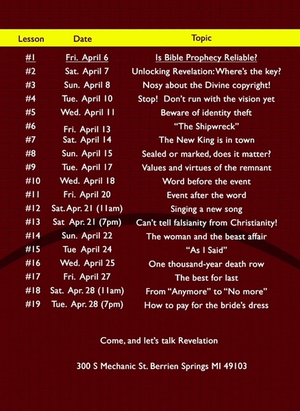WHEN Friday, April 13–Saturday, April 14 10 a.m.–6 p.m. WHERE Pioneer Memorial Church Andrews University Campus, Berrien Springs, Michigan Lunch and child care/activities...