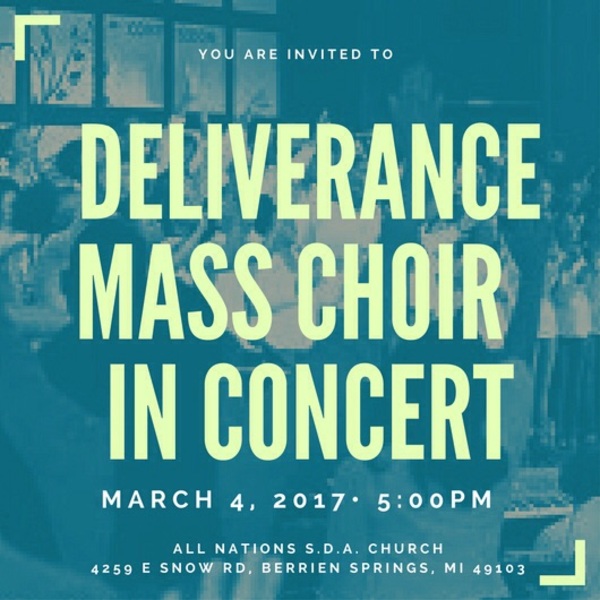 All Nations Youth Ministries invites you to a concert with Deliverance Mass Choir. The event is free and starts at 5:00 pm on March 4th. 4259 East Snow Road,...