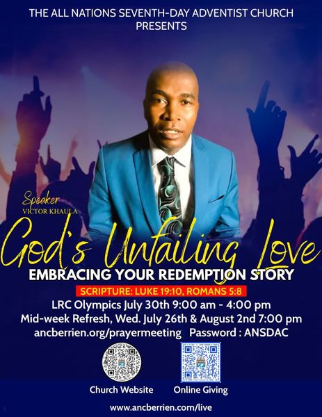 Join us this Sabbath, July 29, at 11:45 a.m. for a wonderful worship experience as Victor Khaula presents "God's Unfailing Love: Embracing Your Redemption Story." Adult and Children's Sabbath... read more
