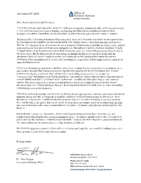 If you or someone you know attended Andrews and served in any branch of the U.S. Armed Forces, we ask your assistance in sharing and responding to this invitation. This display will only be possible with the participation... read moreADC International Food Fair